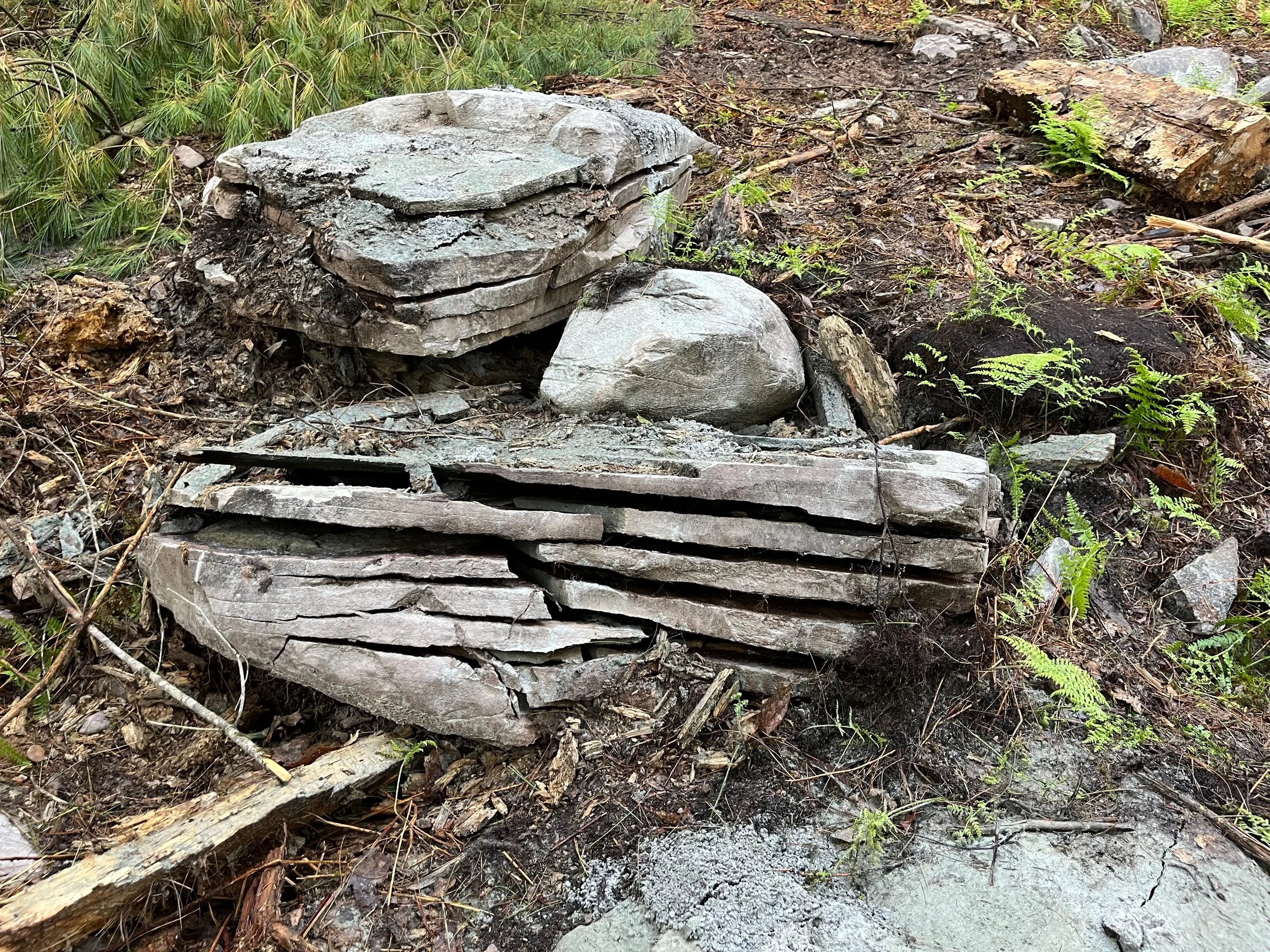 Sawmilling of on-site logs into slabs, beams, and dimensional lumber.